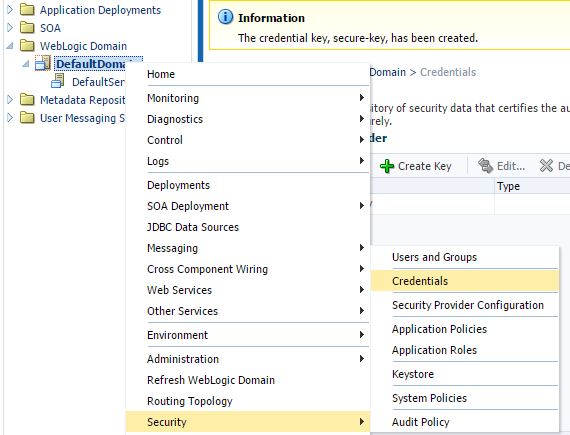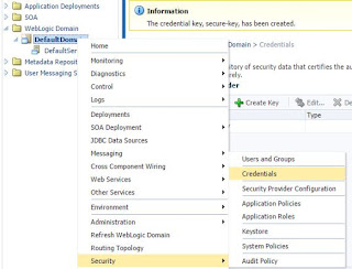 9) Login into the em(http://localhost:7001/em) console. Right Click on Domain Name -> Security -> Credentials