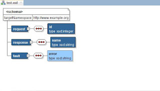 5) Arrange the schema and WSDL editor windows in a vertical split arrangement like as shown below. This can be achieved by dragging the test.xsd tab below