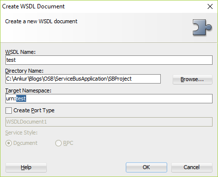 6) Let’s create the WSDL document. Drag and Drop the request element from the XSD to the Port Types window. A popup will get open. Rename the Port Type Name as shown below