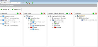 14) Now drag and drop the EmpDempSOAP1Binding node to the Services Window. After this step WSDL document looks like this.