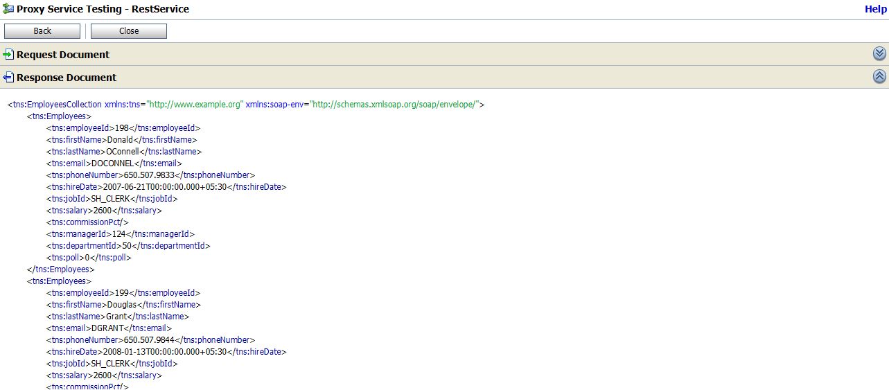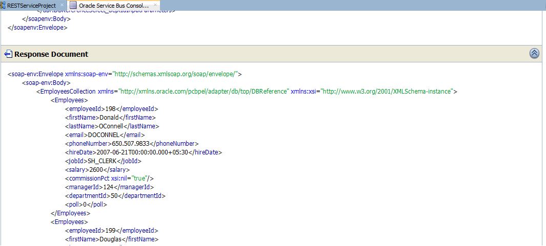 If the response comes with matching department id you entered, it means Business Service is OK and we are ready with our DB adapter(Business Service).