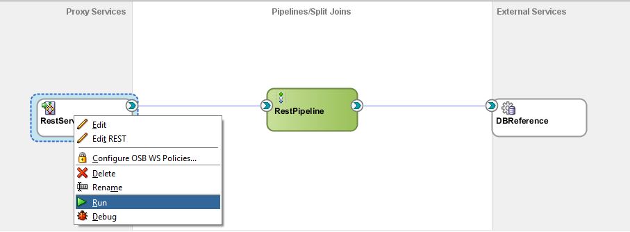 Business service is ready. We can test the Business Service independently. Right click on the DBReference and click Run