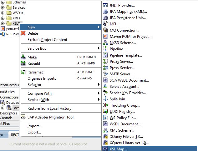 Create a folder XSLTs under resource folder. Right click on the XSLTs folder -> New -> XSL Map