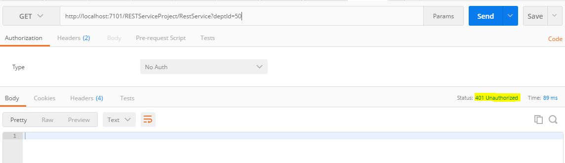 Enter the URL and click SEND. You will get 401 Unauthorized Status code