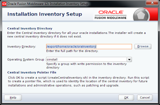 5) After successfully extracting of .jar file, Oracle Weblogic installation will be started as shown in the following screen shot. Simply click the OK button. This is the inventory path.