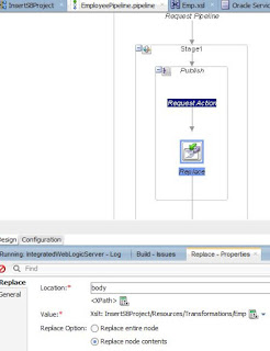 21) Drop the Replace activity under the Publish activity. This replace activity will be used to send input to the business service.