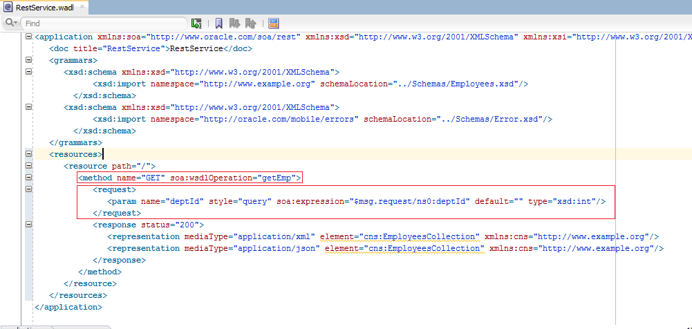<application xmlns:soa="http://www.oracle.com/soa/rest" xmlns:xsd="http://www.w3.org/2001/XMLSchema" xmlns:xsi="http://www.w3.org/2001/XMLSchema-instance" xmlns:tns="http://xmlns.oracle.com/RESTServiceApplication/RESTServiceProject/RestService" xmlns:ns0="http://www.example.org" xmlns="http://wadl.dev.java.net/2009/02">