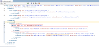 Open RestService.wadl file and see the highlighted part that you needs to be edit