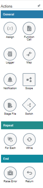 • For Each: Enables you to loop over a repeating element and execute one or more actions within the scope of the for-each action. This blog shows, how to use For Each action.