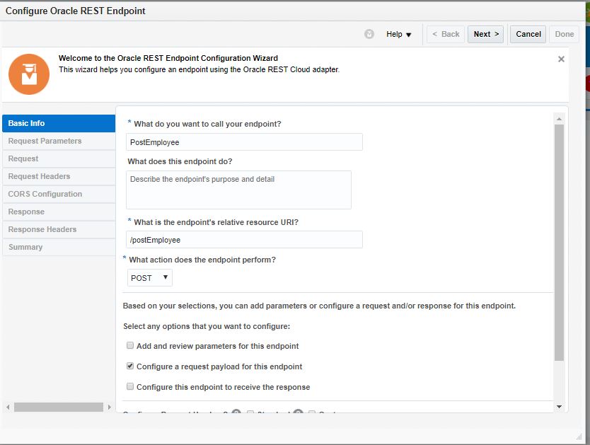 - Select Configure a request payload for this endpoint checkbox- This option allows us to assign payload in the next step
