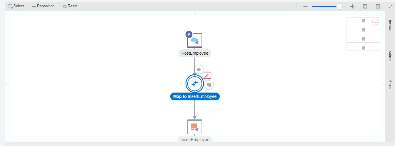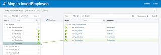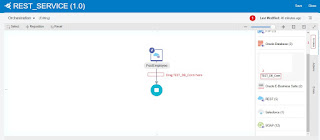 - Click Invokes from right navigation, Select Oracle Databases, drag and drop the TEST_DB_Conn below PostEmployee