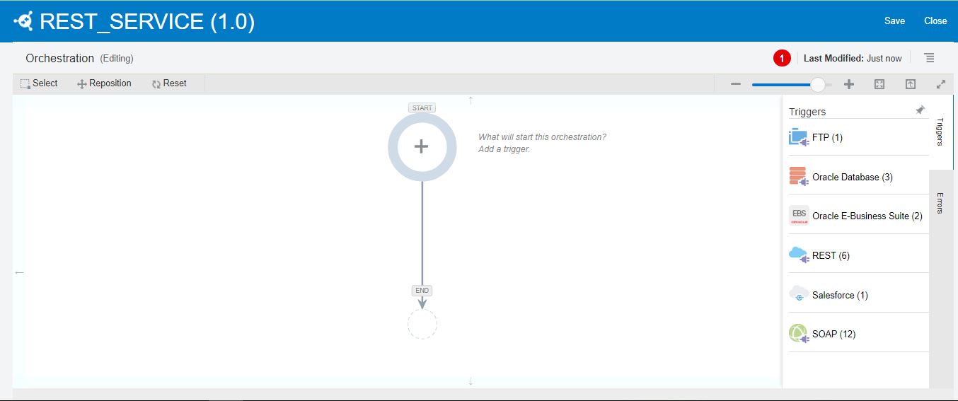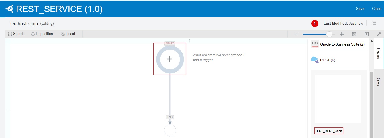 - Drag the TEST_REST_Conn Connection on the canvas from REST connection