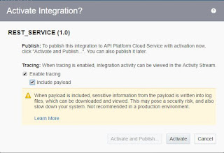 - Select Enable tracking and Include payload check boxes button. This option is useful if we want to see payload in the logs. Click Activate button