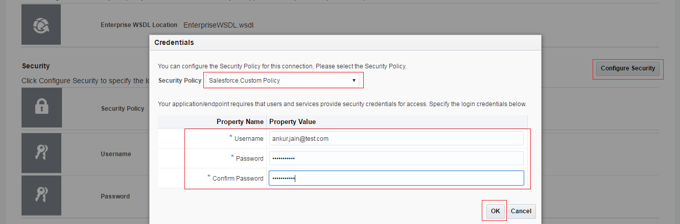• Click Configure Security button, and enter SFDC Username and password and click OK button