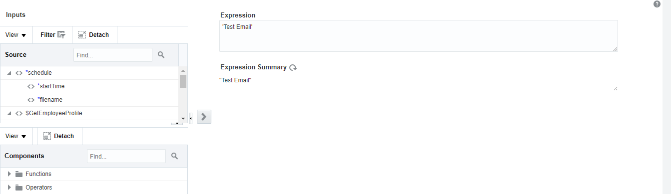 5) Enter From address in the expression input box. Or we can also drag and drop a variable from the left panel if any variable contains From address. Click Close button from the right upper corner.