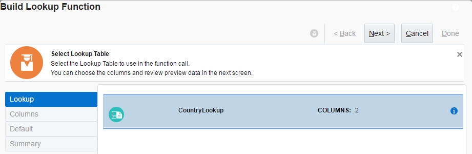 - Select CountryLookup and click Next button