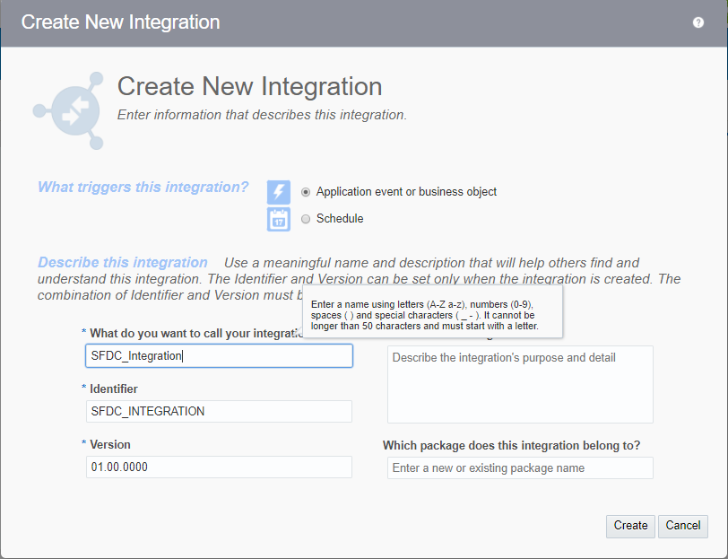 • An Identifier would be picked up automatically from Integration name however you can edit it