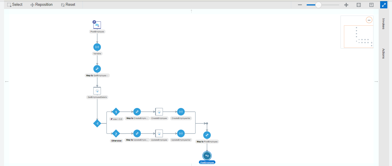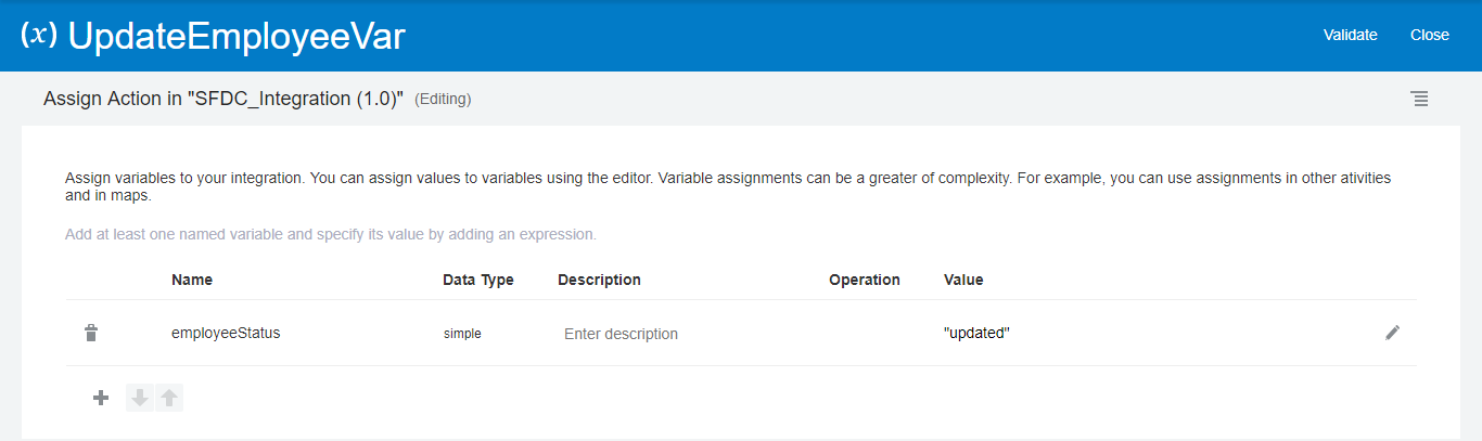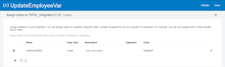 • Drop an Assign activity just below the PostEmployee connection and create a variable named employeeStatus. This variable will be used to set the employee status(created or updated)