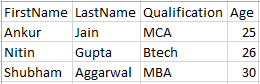 Let’s see the example how to read excel(xlsx) file using the Apache POI library. Below is the sample of excel file that wants to read