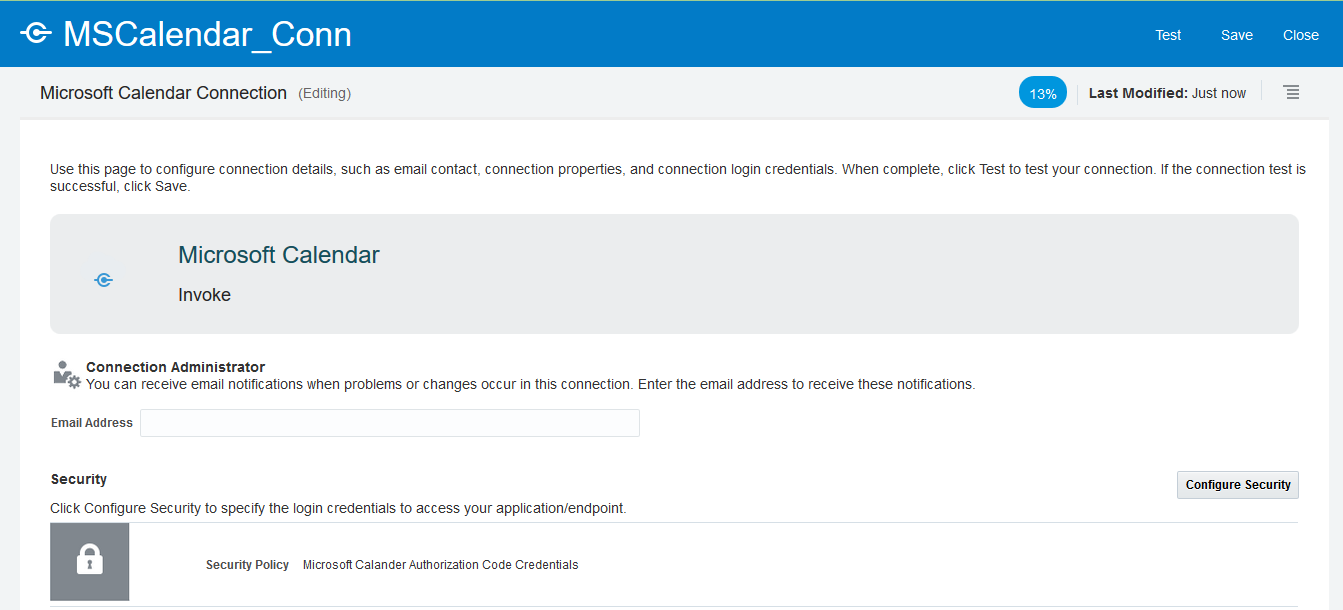 • Security Policy: Select Microsoft Calendar Authorization Code Credentials