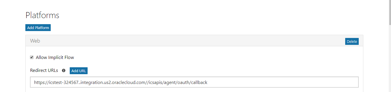 • Enter https://ICSURL:ICSPORT/icsapis/agent/oauth/callback in the Enter a URL field. For example https://icstest-324567.integration.us2.oraclecloud.com//icsapis/agent/oauth/callback