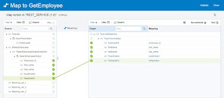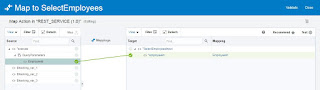 - Click Invokes from right navigation, Select Oracle Databases, drag and drop the TEST_DB_Conn below Map to GetEmployee