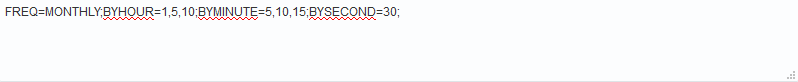 FREQ=MONTHLY;BYHOUR=1,5,10;BYMINUTE=5,10,15;BYSECOND=30;