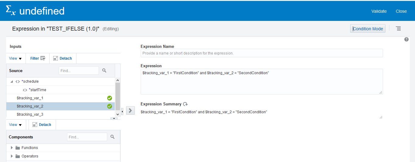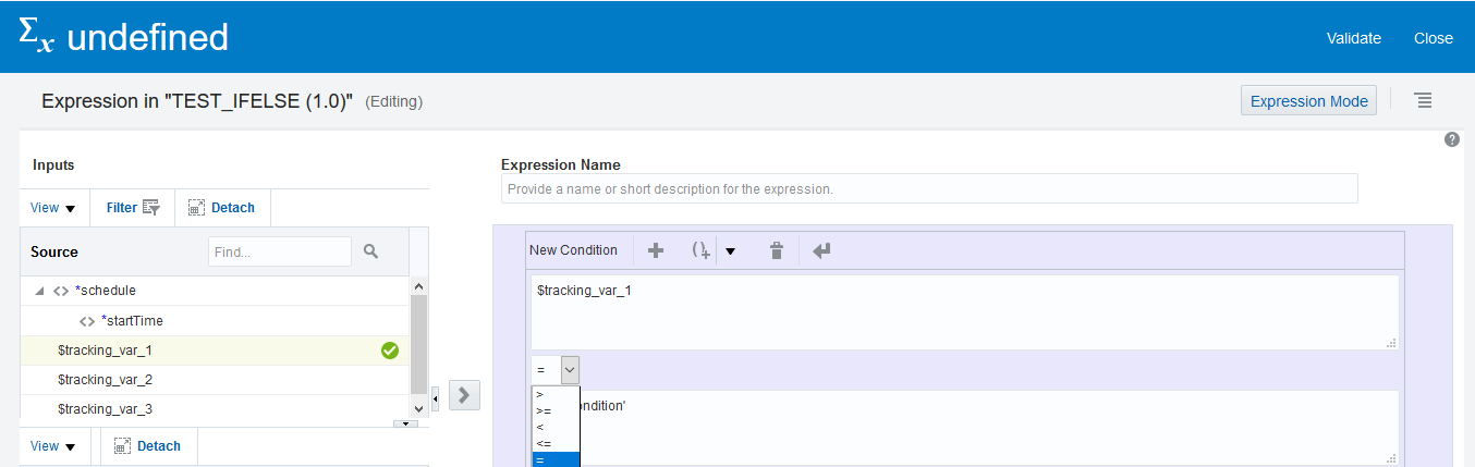 Let’s drag $tracking_var1 in the first box and enter any literal to match in the second box. Select the operation(>, < ,= ,>= ,<=,!=) from the drop down between these two boxes