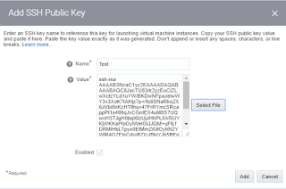 - Click Select File and navigate to the folder where the SSH public key is saved, or paste the public key in the Value field