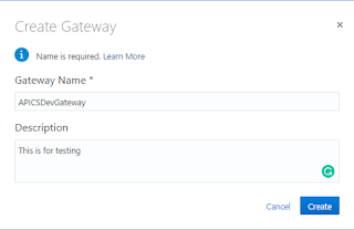 Step-2 Create Logical Gateway in Oracle API CS instance