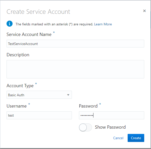 - Account Type: Either Basic Auth or OAuth 2.0 depending on the backend service authentication mechanism