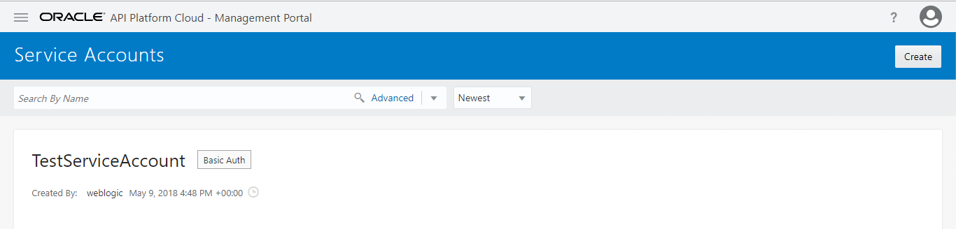 Service Account in Oracle API Cloud Service(CS)