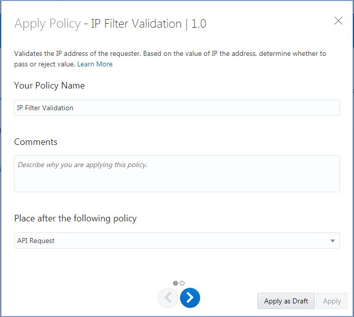 Oracle API CS (Cloud Service) provides IP Filter Validation policy to control which IP Addresses can successfully send requests to the API.