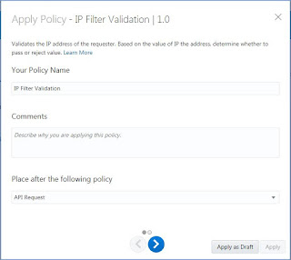 Let’s see how to configure the IP Filter Validation policy using API CS console. To complete this task there should be API configured in API CS. If not, please go through the blog Creating an API in Oracle API Platform Cloud Service