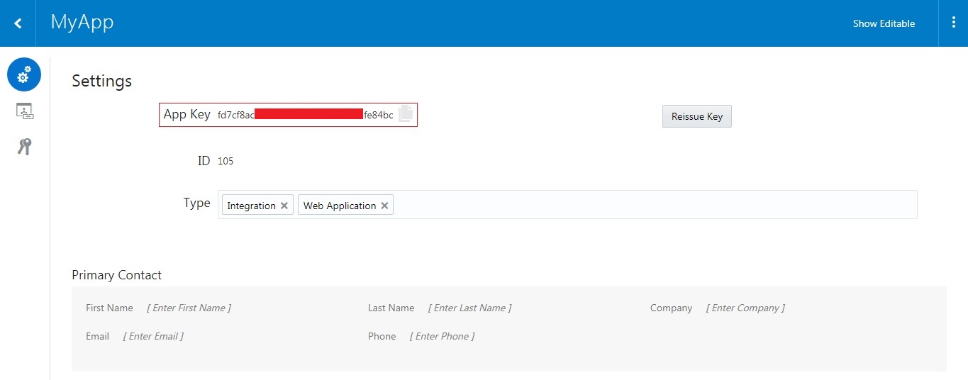 Application key can be reissued for an application in case it has been breached / stolen. Application keys are established at the application level. If application’s key are issued, the old key would become invalidated. This affects all APIs (that have the key validation policy applied) to which an application is registered. Every request to these APIs must use the new key to succeed. Requests using the old key are rejected. APIs without the key validation policy are not affected as these do not require a valid application key to pass requests.