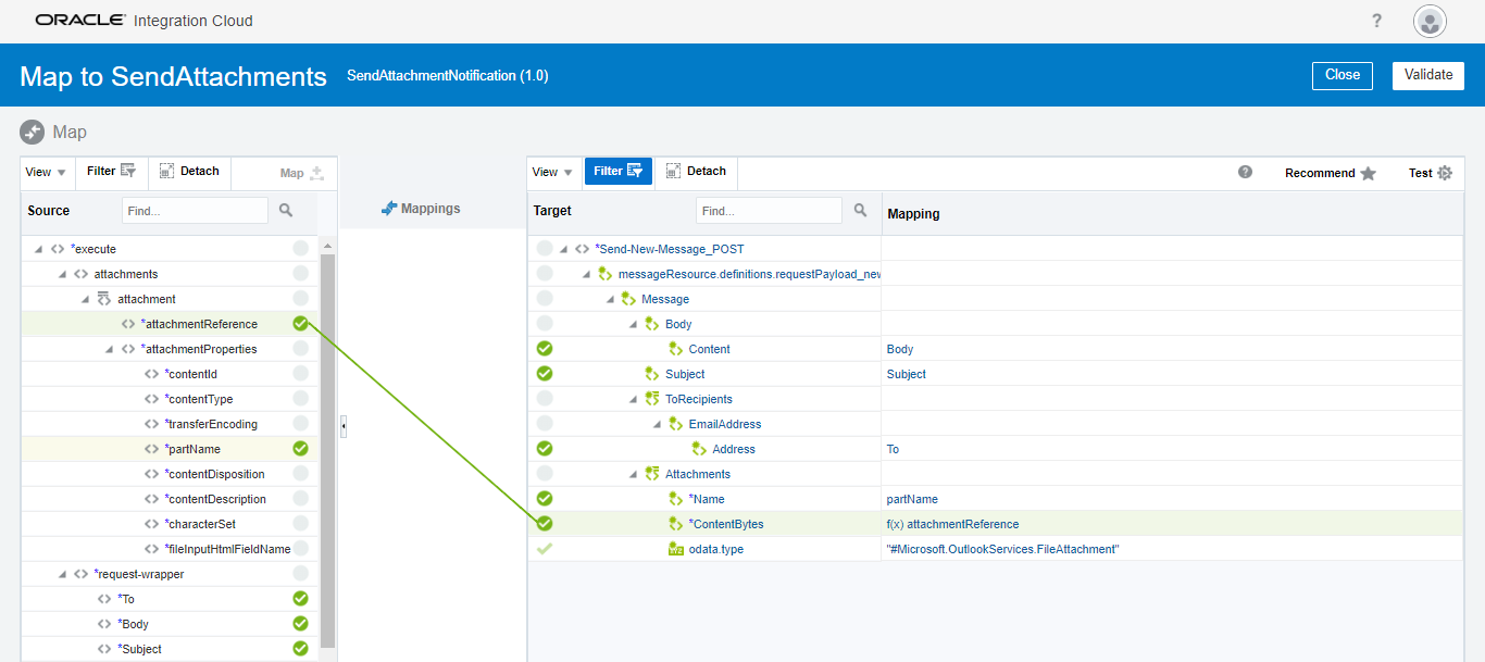 - Open the mapper again and see in the Target mapper, Attachments object would be shown