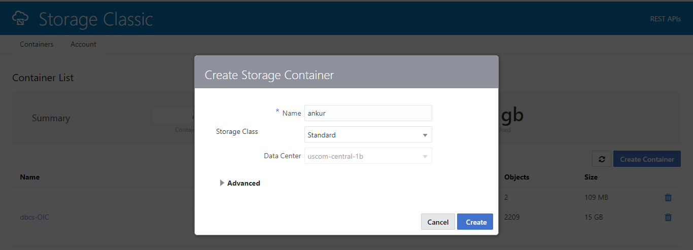 “location”: “https://storage.us.storage.oraclecloud.com/v1/Storage-storage/ankur”,