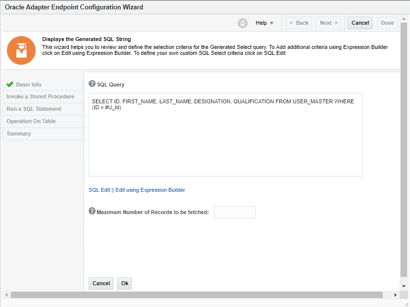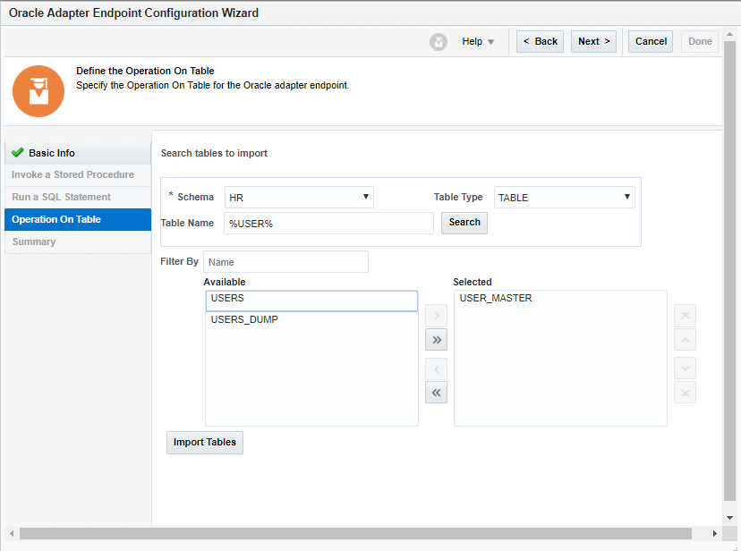 - Select USER_MASTER table from Available pane and move to the Selected pane
