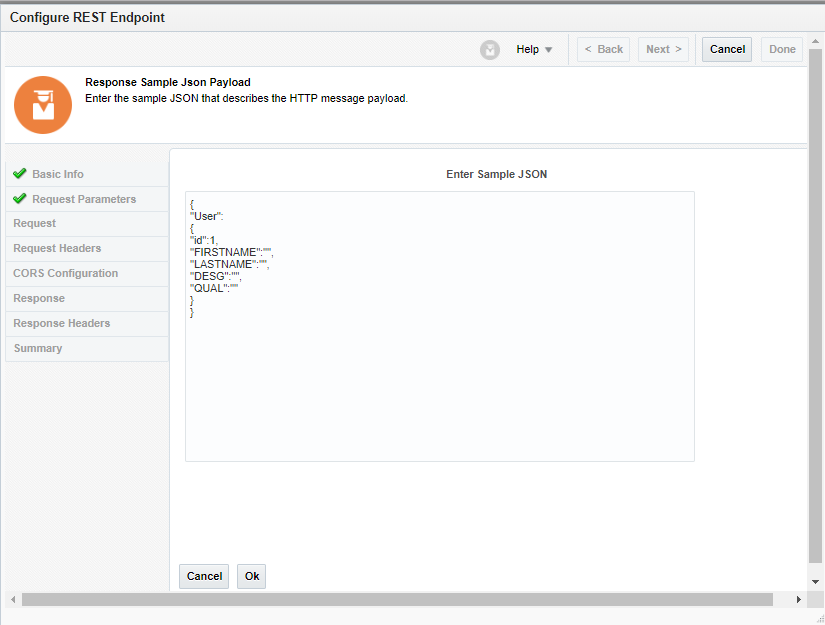 Select JSON Sample from the drop down and then click on <<<inline>>> link