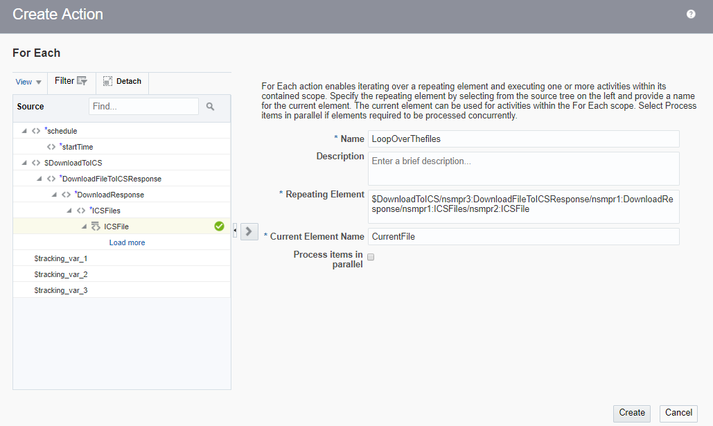 - Since ZIP file is unzipped on the Oracle Cloud Staging location. So to read the file from staging location, add the Stage activity under For each loop