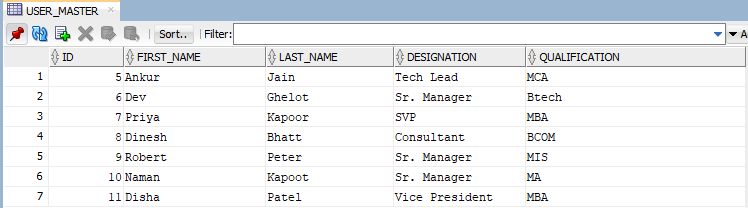 - Check the database table and see all data in the CSV files should be inserted into the USER_MASTER table