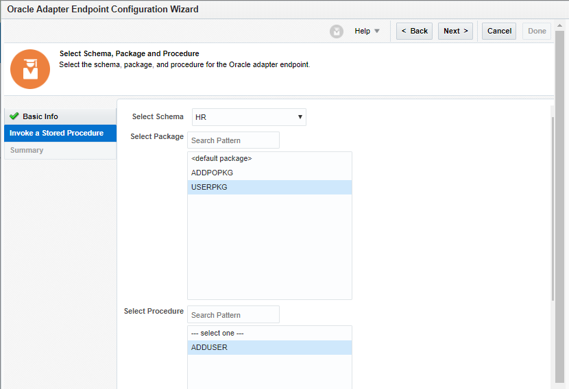 - Select Schema: Since the package which we wanted to call resides under the HR schema, so we have selected the HR schema