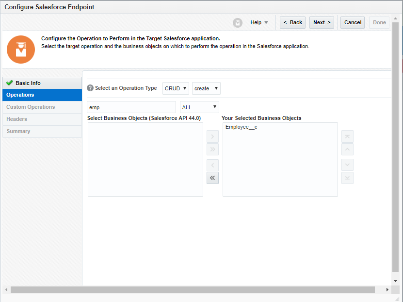 • Search the SFDC object(employee) and move the Employee__c object to the selected pane