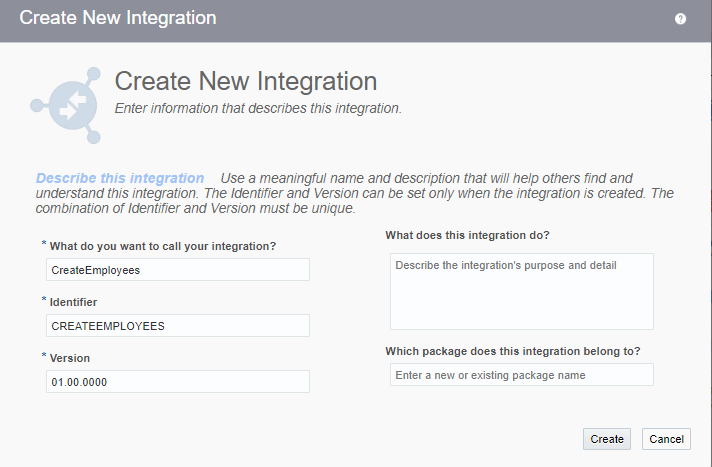 • Enter Integration name as CreateEmployees