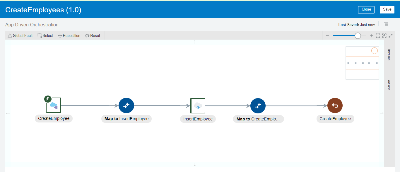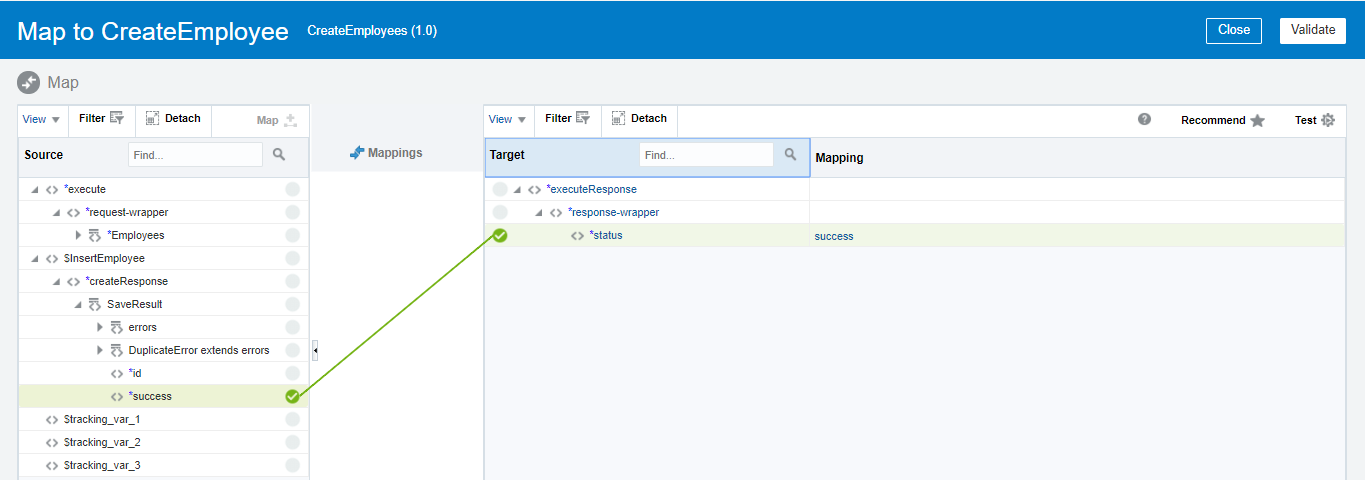 • Edit the CreateEmloyee mapper and map the SFDC response status element with the REST service response status element