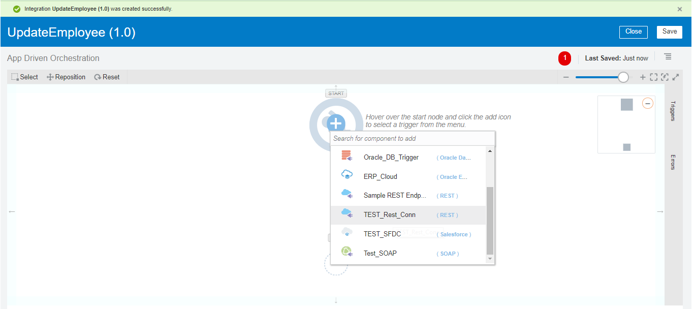 - Drop or Select the REST connection on the integration canvas as a Trigger point