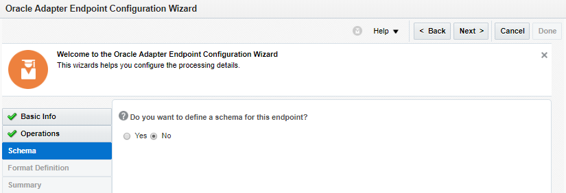 - Select “No” from the Do you want to define a schema for this endpoint ? and click the Next button and finish the wizard