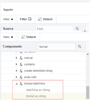 Oracle Integration Cloud Service provides an Out of the box function(xp20:format-dateTime) which allows us to change the date time format. We are on ICS version (18.4.3.0.3) and the function is available(xp20:format-dateTime)