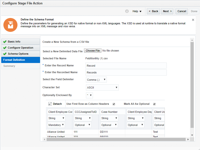 - Select a new Delimited Data File: Choose the sample CSV file which must be of the same type as REST service response