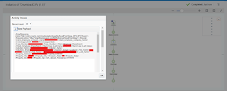 Open the “DownloadCSV” instance and open the activity stream. The CSV data should be printed into the payload section
